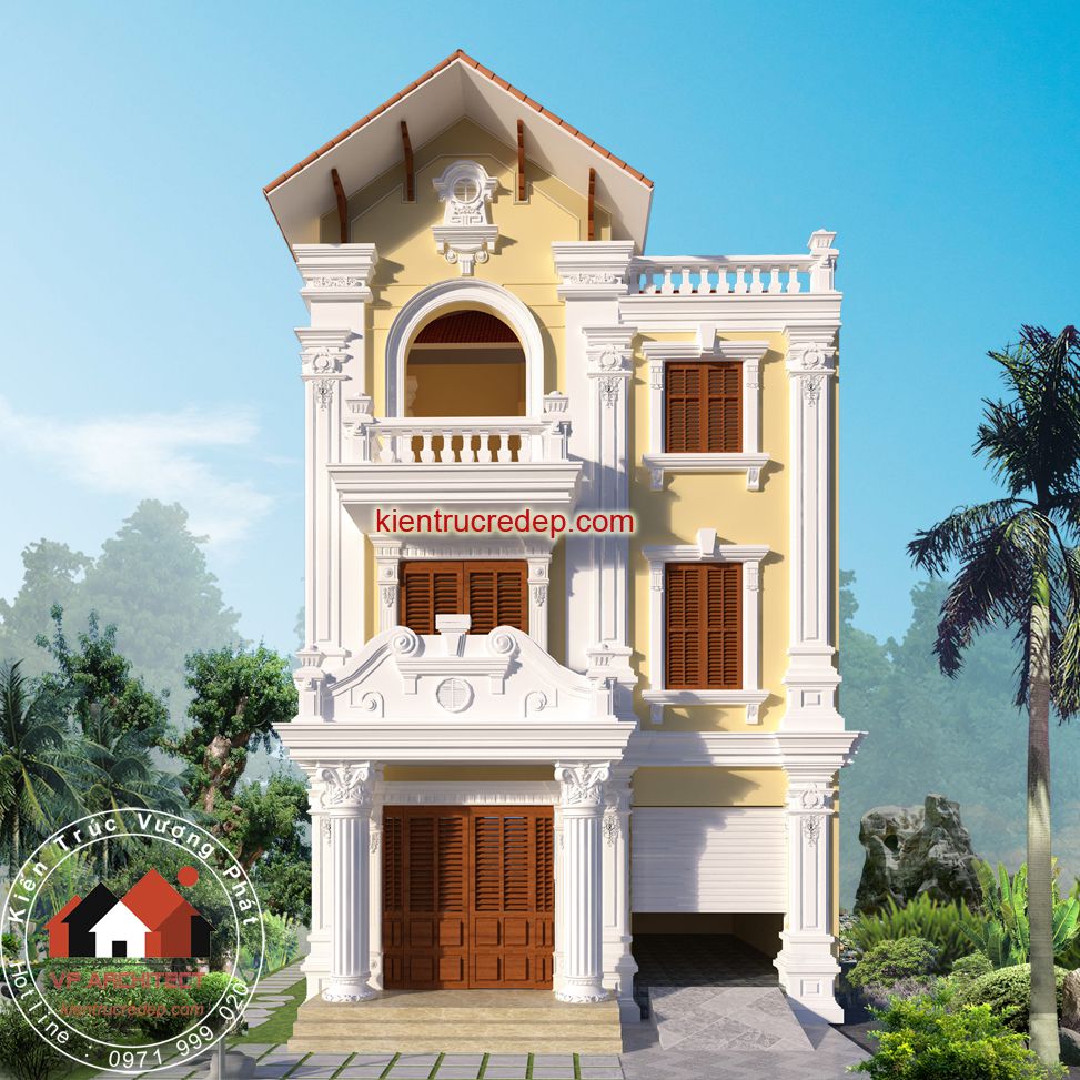 Mặt tiền đắp nổi với nét kiến trúc pháp sang trọng , Sảng chính vươn rộng với trụ cột trang trí hoa văn tỷ mỉ, thể hiện tính thẩm mỹ cao của chủ nhà. Ban công và trụ cột trang trí hoa văn phào chỉ làm ngôi nhà không những đẹp về tỷ lệ, sang trọng và tỷ mỉ đến từng chi tiết nhỏ.