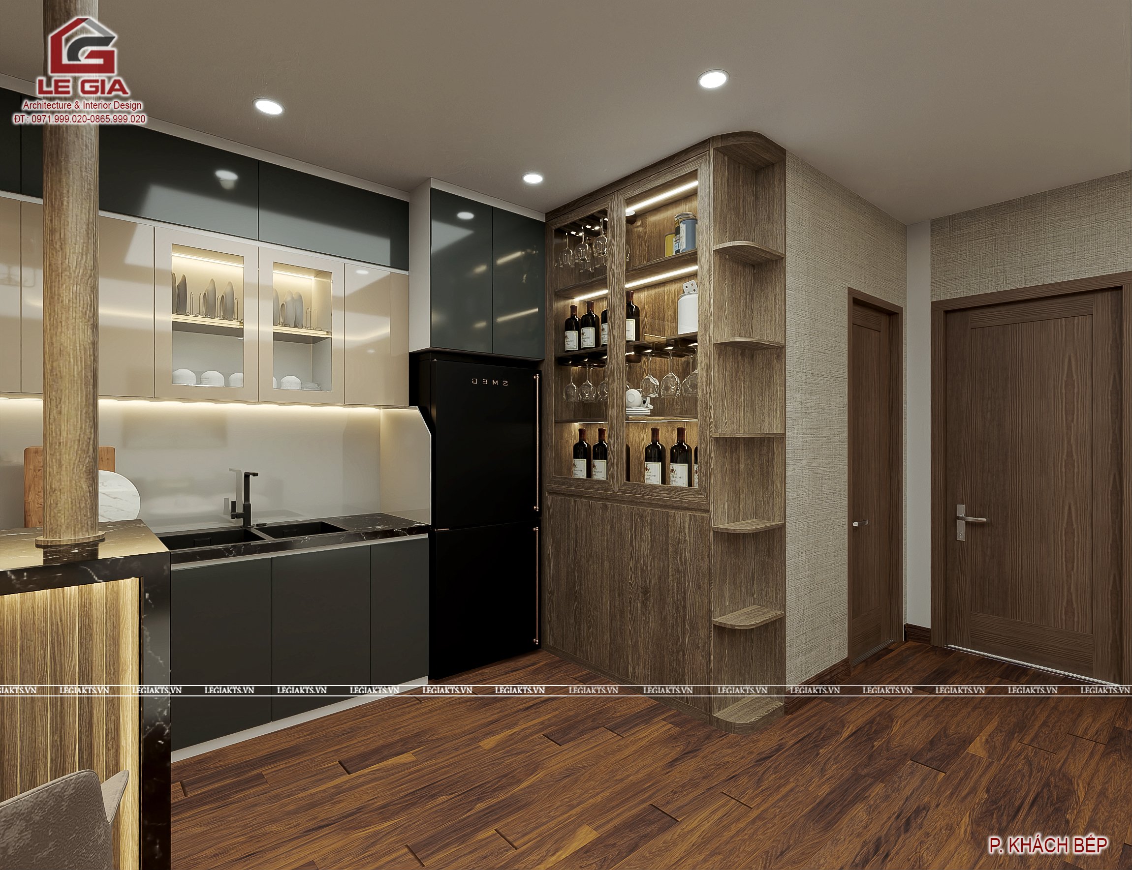 Tủ rượu kết hợp tủ decor cạnh tủ lạnh