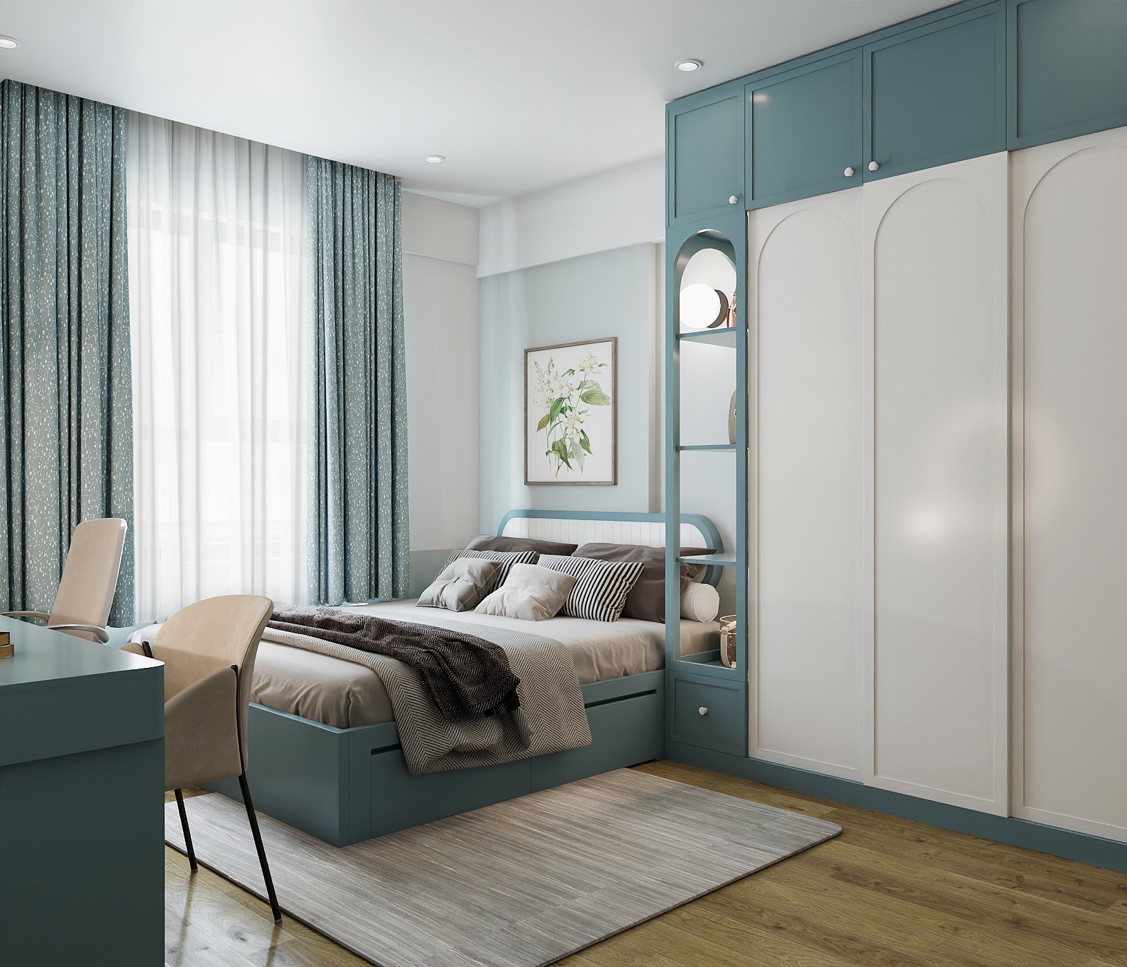 2. Phong cách nội thất : hiện đại, màu sắc tươi sáng, gỗ công nghiệp MDF Thái Lan sơn Inchem