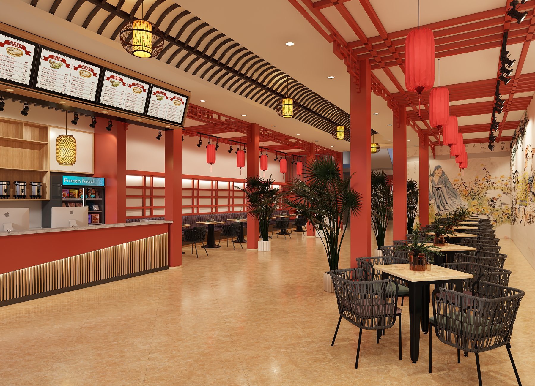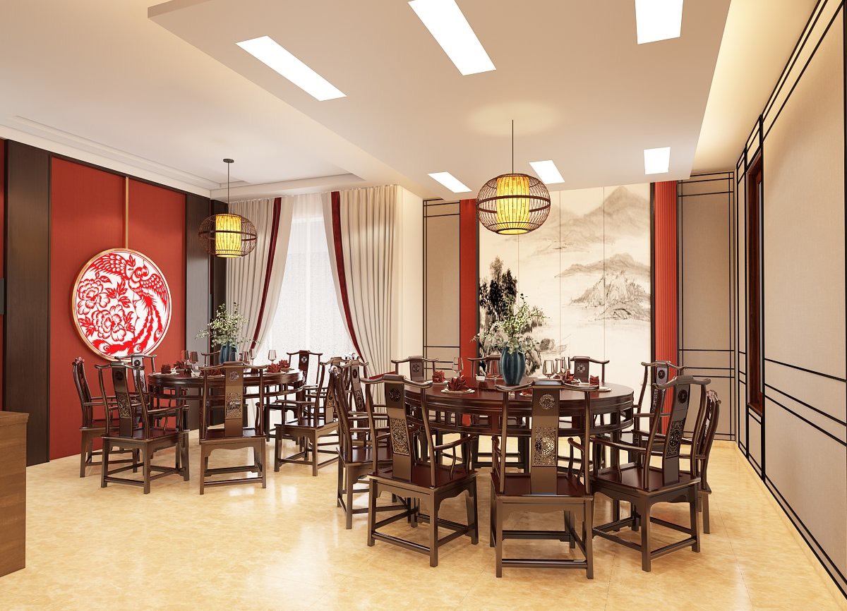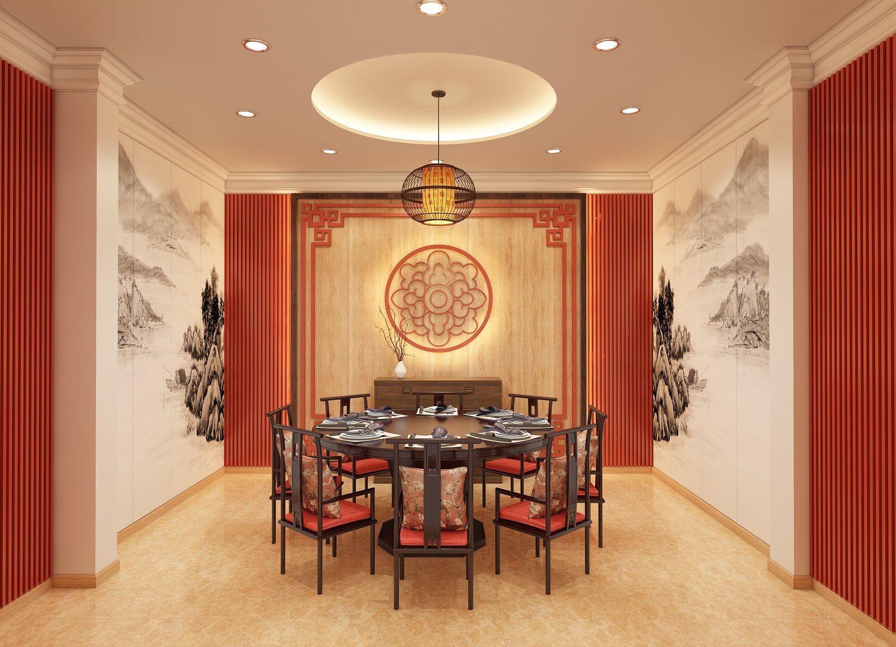 Thiết kế nội thất nhà hàng Trung Hoa tại Thành phố Bắc Giang. Lấy cảm hứng từ văn hóa, kiến trúc và lịch sử lâu đời của đất nước Trung Quốc tông màu chủ yếu là các gam màu đỏ, trắng, nâu đen, dĩ nhiên không gian nhà hàng không thể thiếu các chậu cây xanh, đèn lồng. Nhưng để phù hợp với thời đại hơn KTS Lê Gia đã kết hợp hai phong cách truyền thống và hiện đại. Mang đến vẻ đẹp đậm nét văn hóa truyền thống nhưng vẫn rất trẻ trung và thời thượng. Phong cách thiết kế này rất thu hút những đối tượng khách hàng là những bạn trẻ yêu cái mới lạ. Chính vì thế mà không gian ăn uống luôn được KTS chăm chút và tối ưu hóa.
