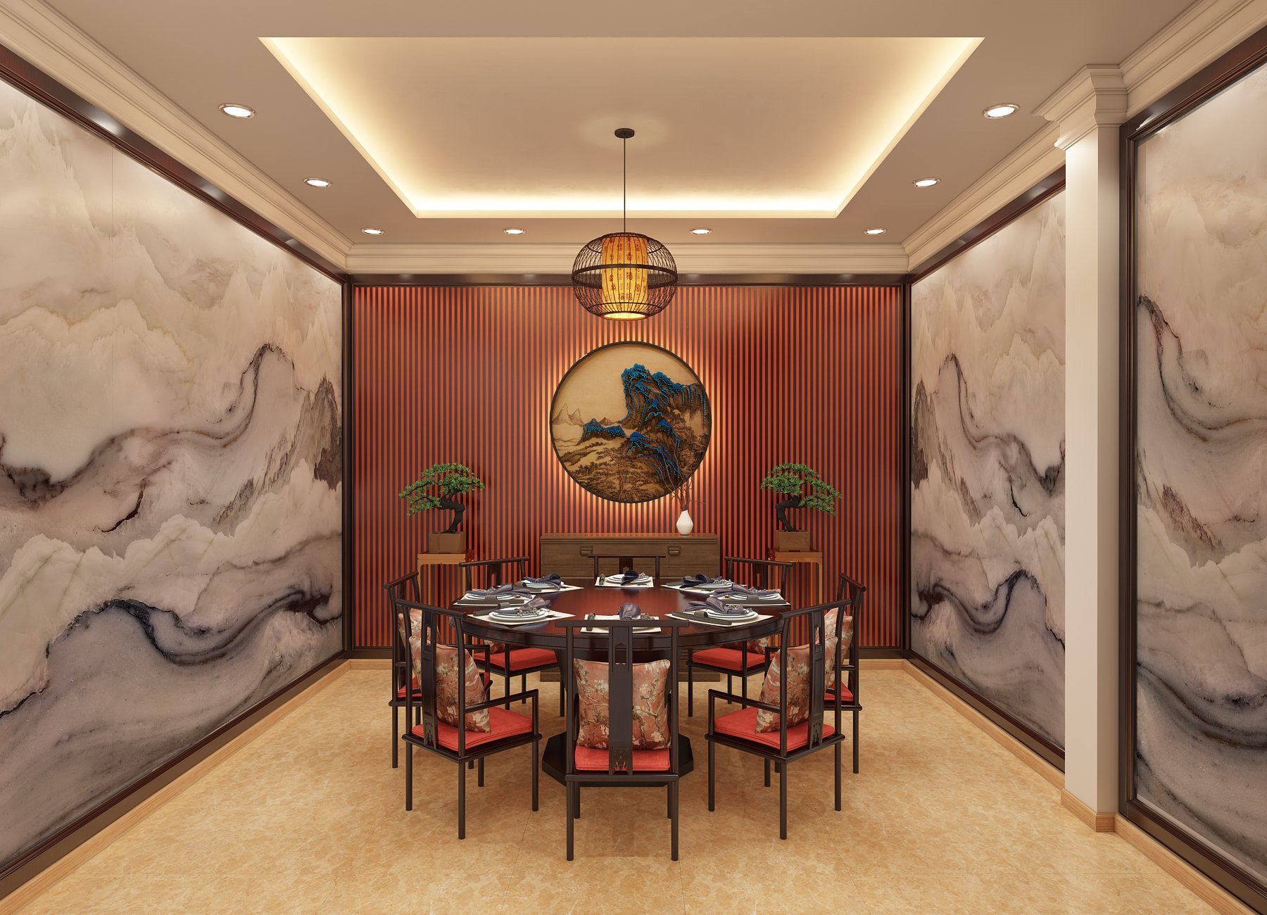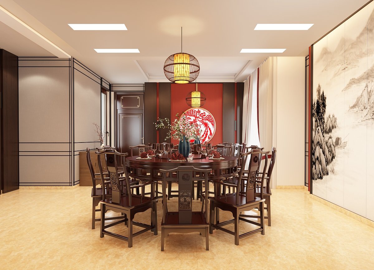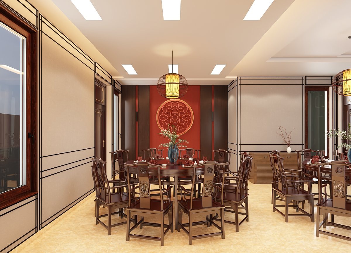 Thiết kế nội thất nhà hàng Trung Hoa tại Thành phố Bắc Giang. Lấy cảm hứng từ văn hóa, kiến trúc và lịch sử lâu đời của đất nước Trung Quốc tông màu chủ yếu là các gam màu đỏ, trắng, nâu đen, dĩ nhiên không gian nhà hàng không thể thiếu các chậu cây xanh, đèn lồng. Nhưng để phù hợp với thời đại hơn KTS Lê Gia đã kết hợp hai phong cách truyền thống và hiện đại. Mang đến vẻ đẹp đậm nét văn hóa truyền thống nhưng vẫn rất trẻ trung và thời thượng. Phong cách thiết kế này rất thu hút những đối tượng khách hàng là những bạn trẻ yêu cái mới lạ. Chính vì thế mà không gian ăn uống luôn được KTS chăm chút và tối ưu hóa.