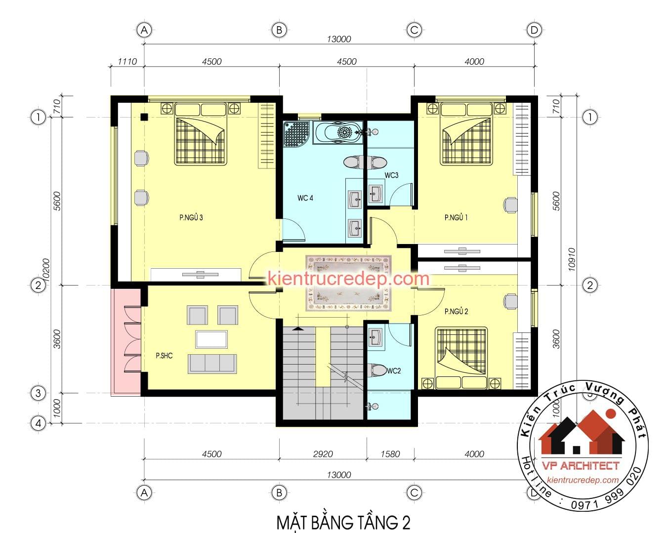 - Tầng 2 : 3 Phòng ngủ + 1 phòng SHC + 3 WC