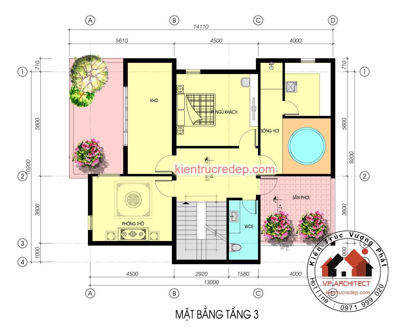 3. Kích thước xây dựng : 10,5x13,5m 4. Diện tích sử dụng : 390 m2