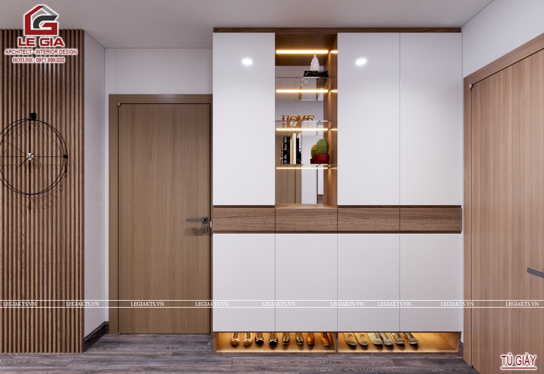 Tủ giày thiết kế ngăn dưới cao 20cm để những đôi dày thường xuyên sử dụng