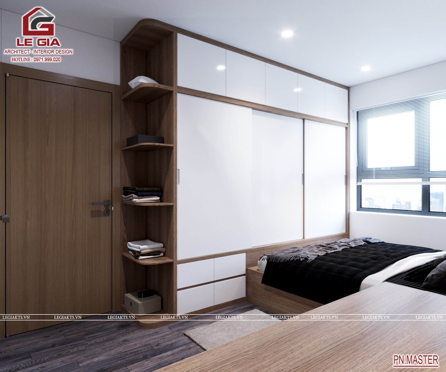 Thiết kế tông màu sáng là giải pháp tuyệt vời mà KTS Lê Gia đưa ra do không gian căn hộ hẹp màu sáng sẽ tạo cảm giác rộng rãi, thoáng đãng, mang lại sự trẻ trung, tươi tắn đầy sức sống.