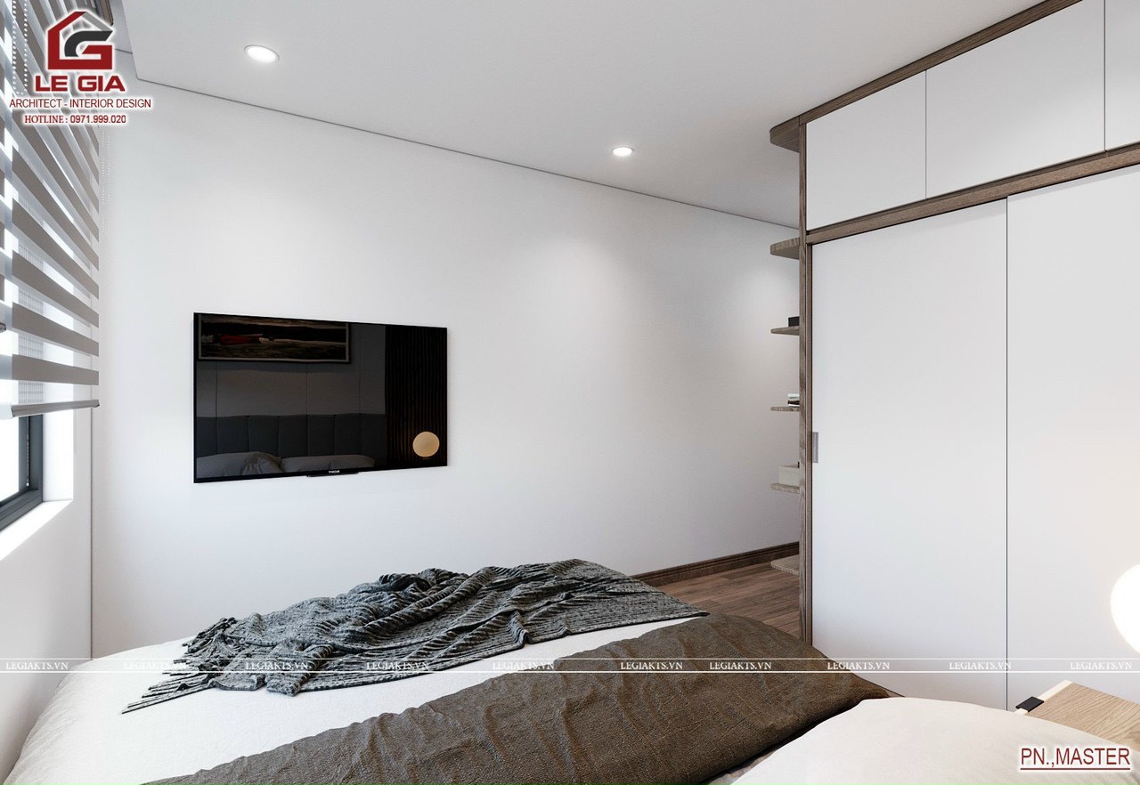 Phòng ngủ Master được thiết kế tối giản nhưng hiện đại và đầy đủ tiện nghi, bố cục sắp xếp rất hợp lý mang tính thẩm mỹ cao