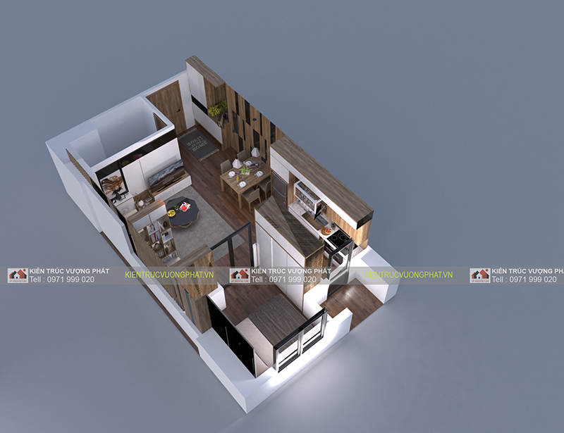 View nhìn tổng thể từ trên cao, người xem có thể thấy được toàn bộ bố cục của căn hộ.
