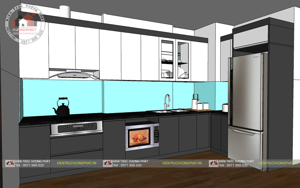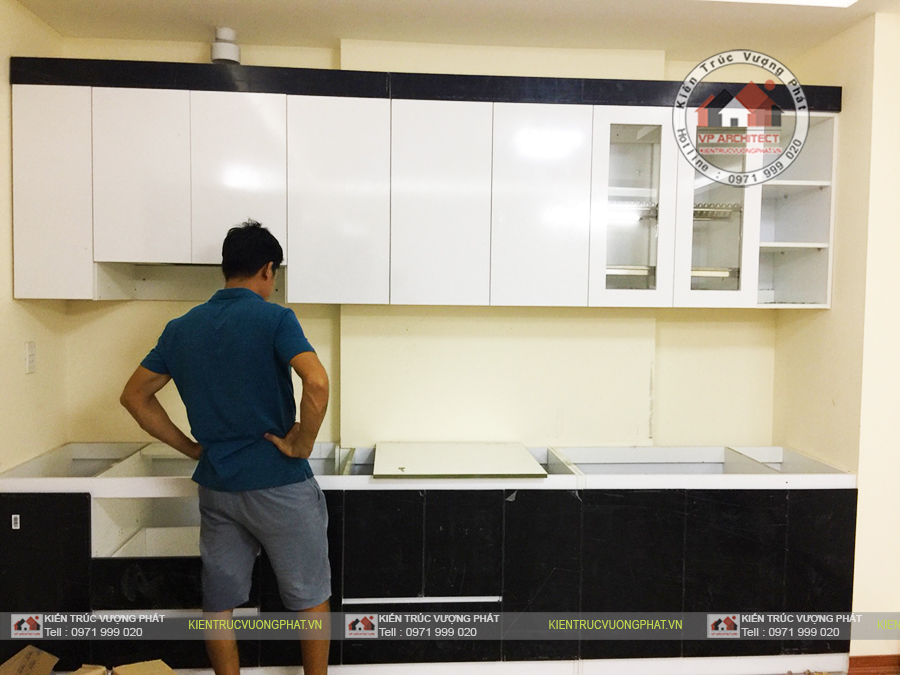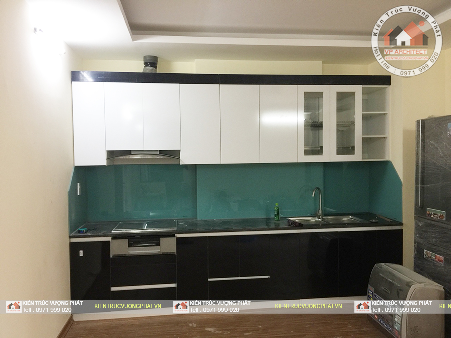 Tủ bếp gỗ công nghiệp cốt chống ẩm - Bề mặt phủ Melamin An Cường