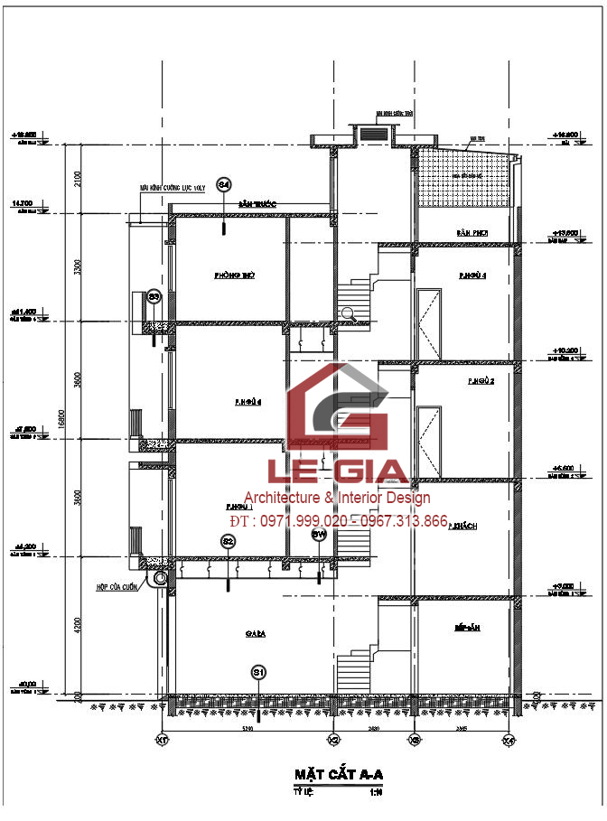 Mặt cắt thể hiện thiết kế lệch tầng: