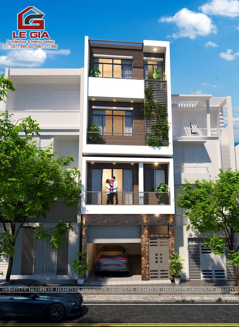 Thiết kế nhà phố lệch tầng mặt tiền 5.5m - 4 Tầng - Kiến Trúc Hiện Đại