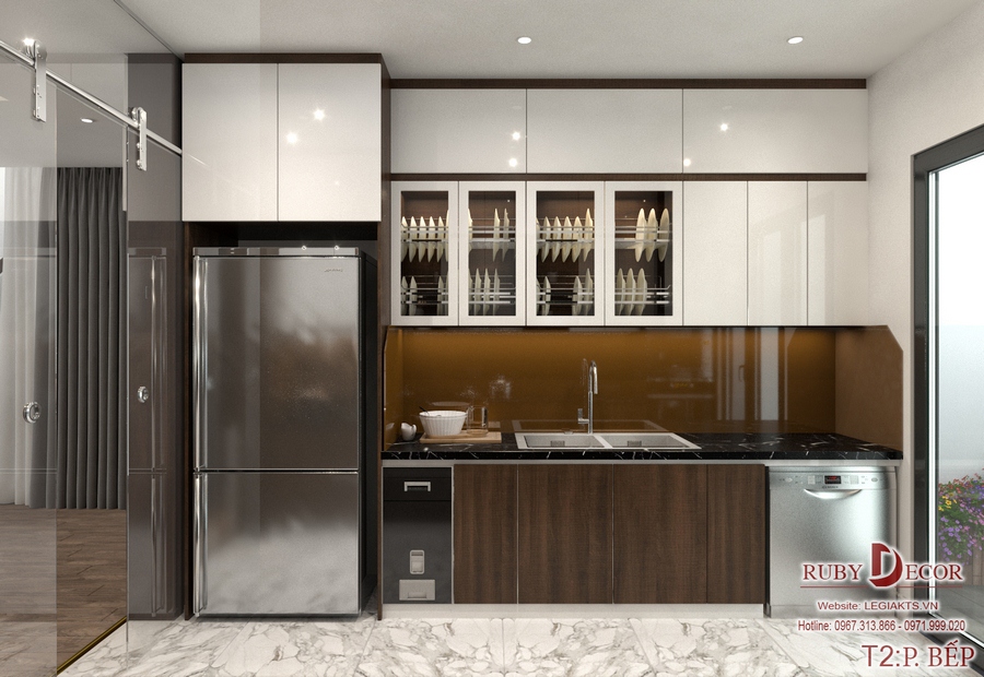 Mẫu thiết kế tủ bếp gỗ công nghiệp - cánh Acrylic sang trọng và hiện đại nhất cho năm 2021 :